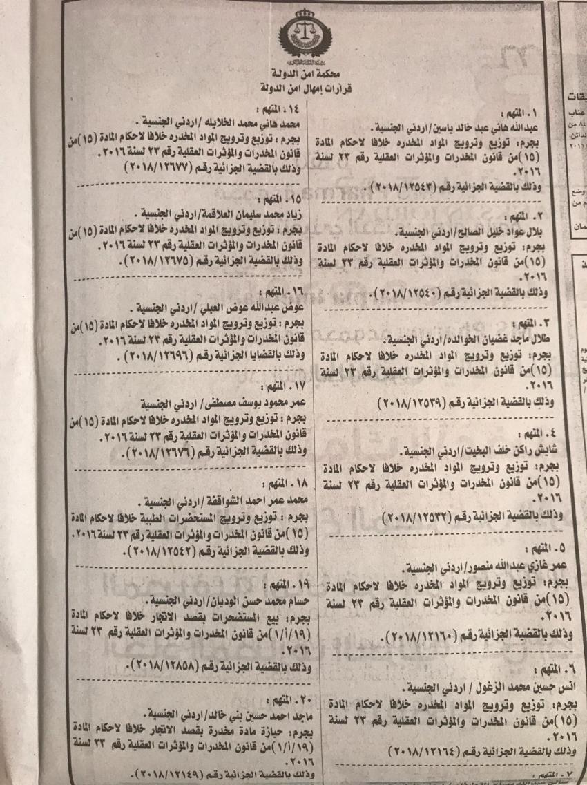 وطالبت المحكمة افراد الامن العام بالقبض علیھم وتسلیمھم للسلطات المختصة.