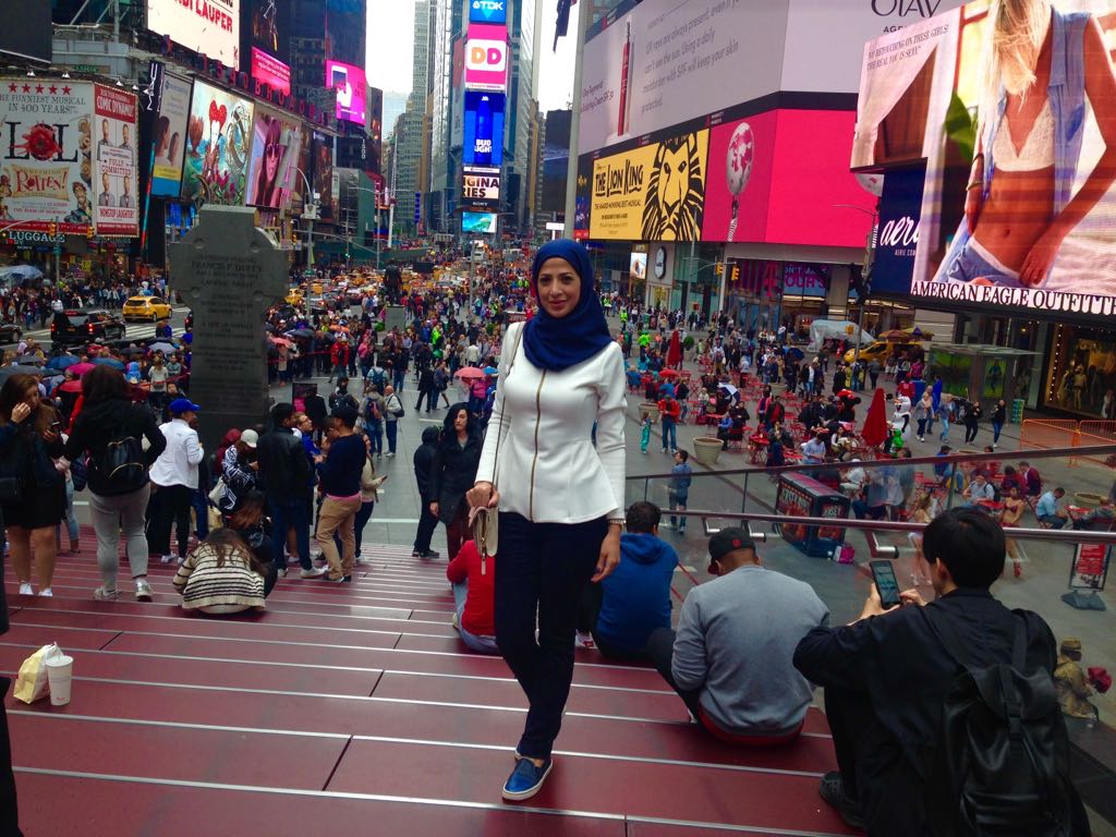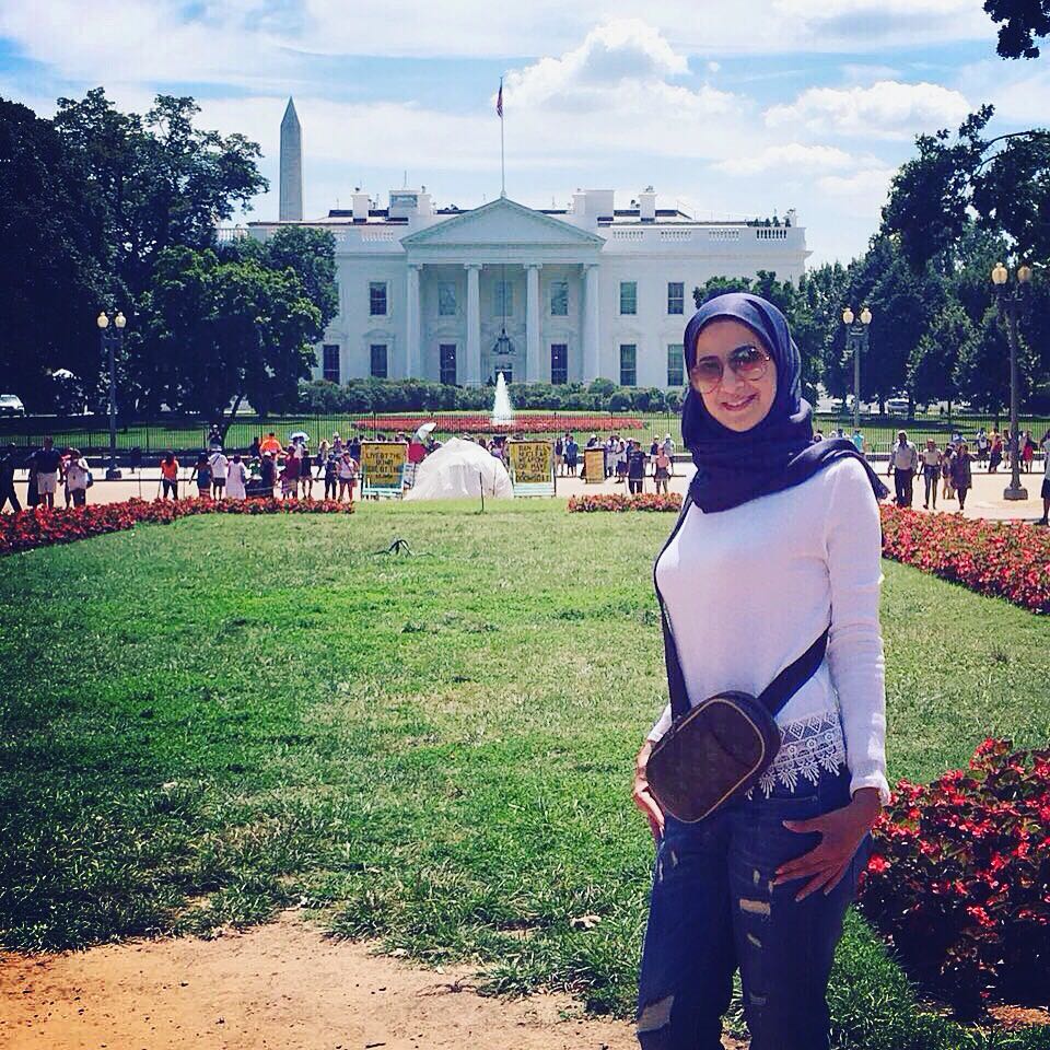 2015 وصلت حمرا الى واشنطن وهي الفترة التي شهدت فيها العاصمة الامريكية تصاعدا في الهجمات الإرهابية باسم الاسلام. سألنا رائدة عن مدى تعرضها لمضايقات او ضغوطات من قبل أحد باعتبارها شابة محجبة؟ اجابت مبتسمة " بس العرب هون بيسألوني هيك أسئلة" لم اتعرض ابدا لمضايقة من أحد، بالعكس اسأل كثيرا عن اناقة حجابي هنا، واغلب المتابعين لي عبر حسابي الخاص على انستغرام من جنسيات متعددة أمريكية أوروبية عربية، وهذا " إضافة لي بالحقيقة" في بلد يحترم حرية المعتقد والدين.