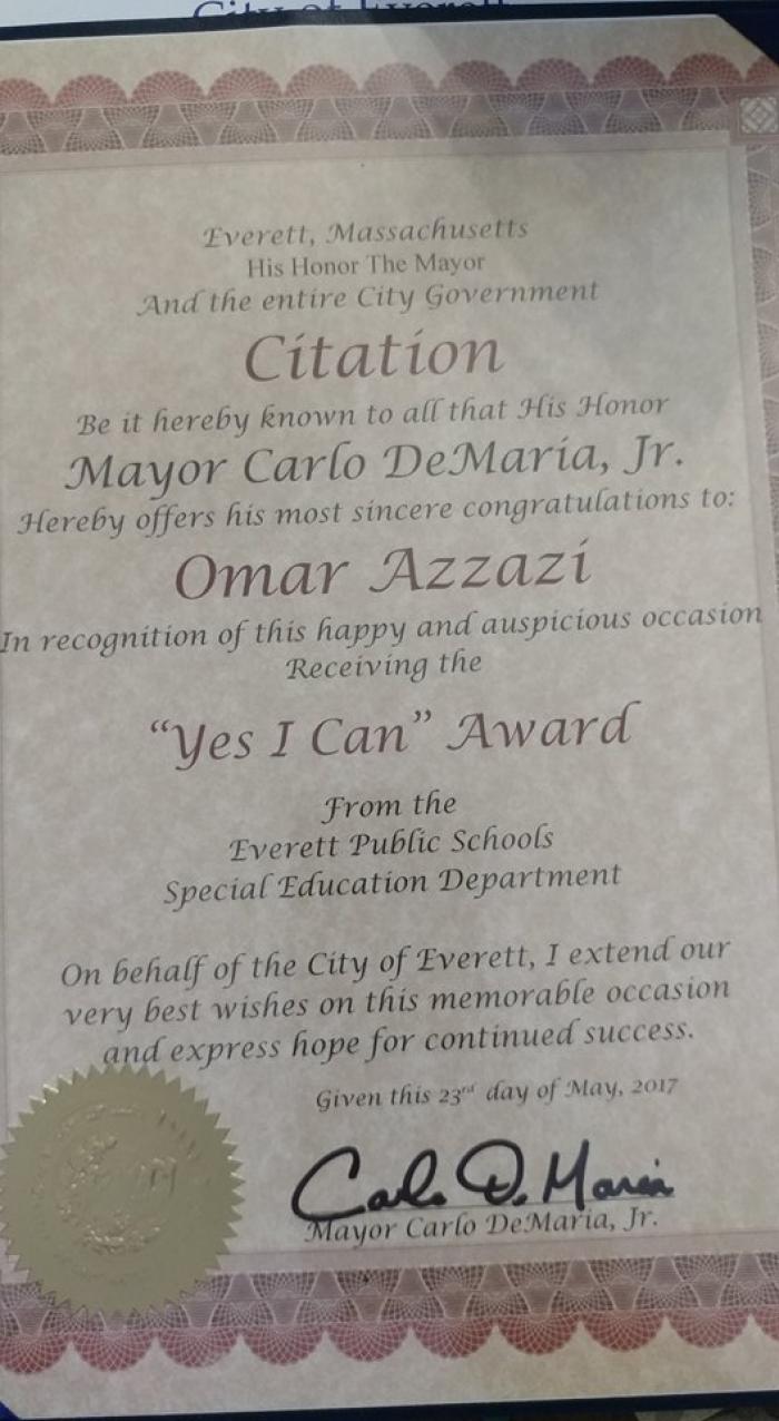 حصل الطالب الاردني عمر محمد عزازي على جائزة yes I can في الولايات المتحدة الامريكية وكان الاول على مستوى مدينة بوسطن .