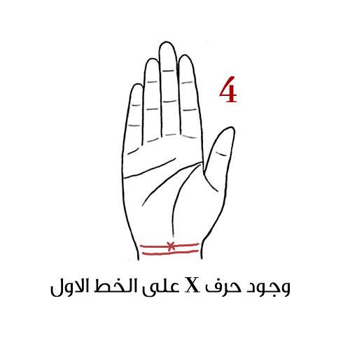 4- وجود حرف X على الخط الاول في المعصم: أنتِ وفيّة تقومين دوماً بما هو صحيح ومثير للاهتمام: تقومين بأعمال مهمة ولديك قصصاً مثيرة وأحياناً تشعرين بأنه عليك تغيير نفسك من أجل الملاءمة مع الآخرين، ولكن تذكري أنه من الافضل أن تكوني نفس!