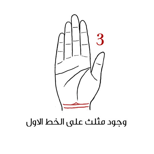3- وجود مثلث على الخط الاول في المعصم: أنت شغوفة وخلاقة ومبدعة وعاطفية بكل ما للكلمة من معنى. ومن جهة أخرى أنتِ حساسة بعض الشيء وبالأخص إن أساء الآخرون فهمك. أنت ذكية جداً ولديك حوافز داخلية تدفعك إلى الامام.