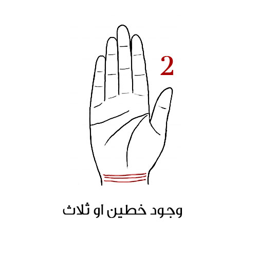2- وجود خطين أو ثلاث في المعصم: ذلك يعني أنك كريمة جداً، تملكين معايير مرتفعة ومسؤولة ومنفتحة بالأخص مع الاشخاص الذين تعرفينهم.