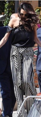 تمتعي بحضور شبابي ملفت بالرداء السروالي أو السراويل بتقليمات الأبيض والأسود كما خطفت بهما الأنظار أمل كلوني.