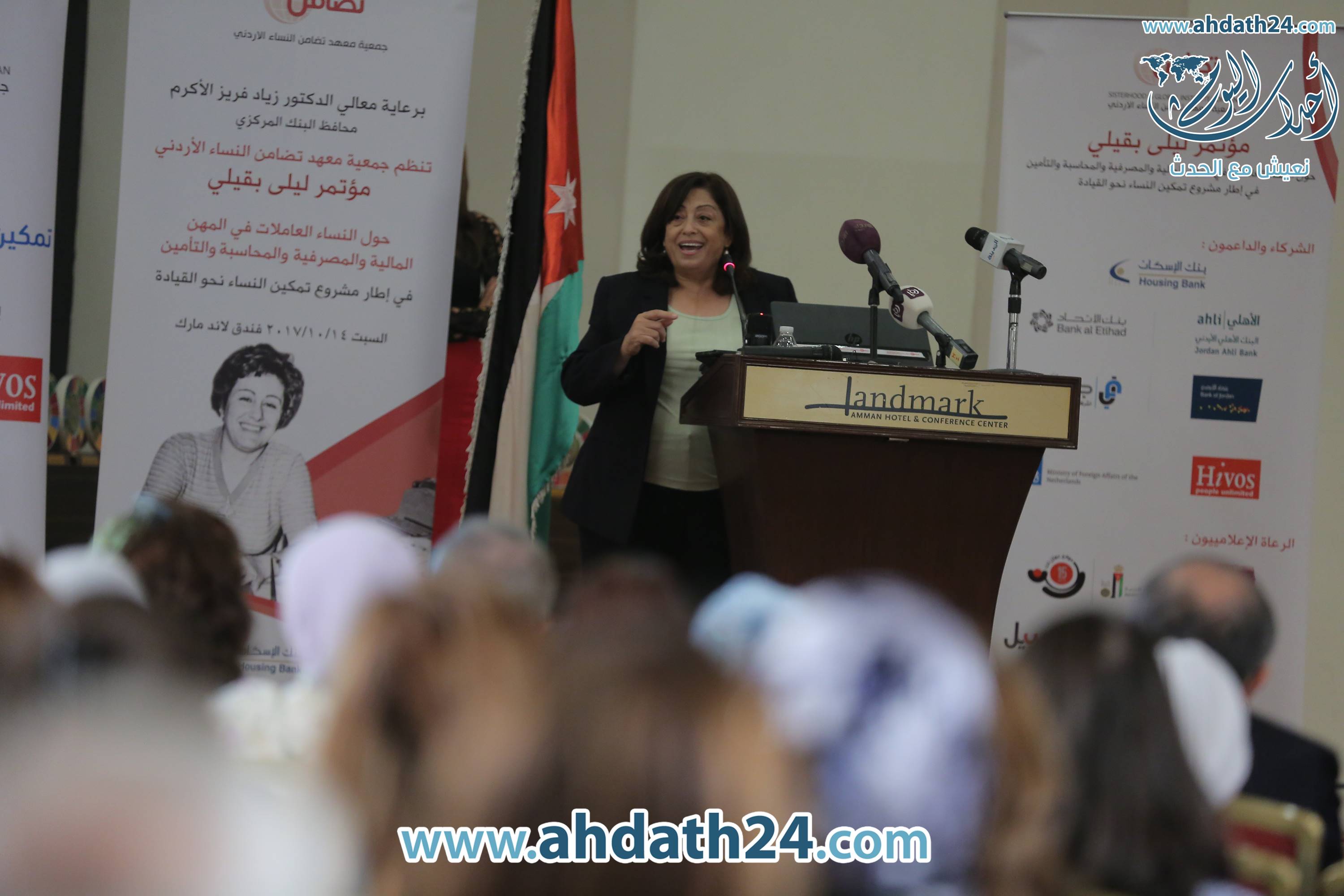 ونحن من خلالها نكرم النساء الأردنيات الرائدات القياديات والمؤثرات اللاتي عملن دائماً بصمت ومثابرة، وبعيداً عن الأضواء، ولكنهن عبّدن مسارات تقدم المرأة الأردنية وتخطين الحواجز والعقبات، وأسهمن في دخول النساء مختلف مجالات وميادين العمل والعطاء، وعززن مكانة المرأة الأردنية... لذلك أطلقنا إسمها على هذا المؤتمر مع تمنياتنا لها بالعمر المديد حيث إحتفلت بعامها الثمانين في تموز 2017.