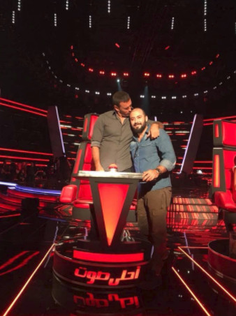 والتقطت الصورة خلال مشاركة الساهر في لجنة تحكيم الموسم السابق من برنامج المواهب "ذا فويس".