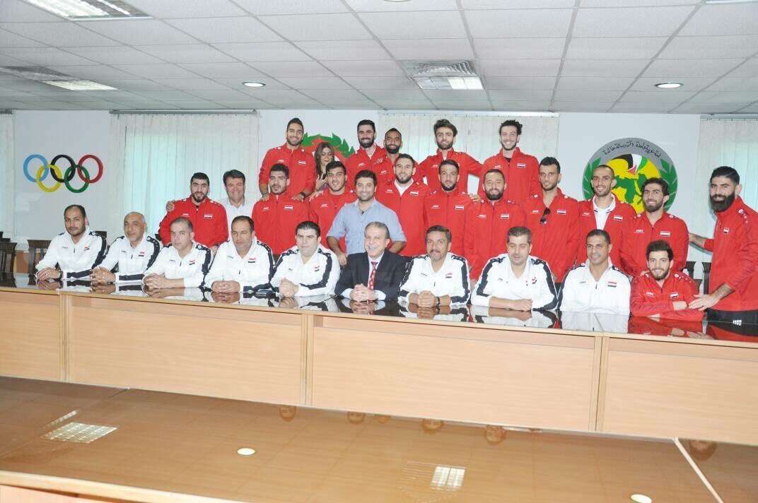 وظهر اللاعبون في الصور وهم يهدون بشار الأسد قميصا موقعا بأسمائهم، كما التقطوا معه صورة جماعية وهو يرتدي قميص المنتخب.