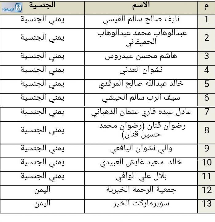 واستنادا لنظام جرائم الإرهاب وتمويله في المملكة ووفقا لقرار مجلس الأمن رقم 1373)2001 ،(سيتم فرض جزاءات على تلك الأسماء تشمل تجميد أي أصول لها داخل المملكة، وتحظر على المواطنين والمقيمين بالمملكة الانخراط في أي تعاملات مع تلك الأسماء والكيانين المصنفة.