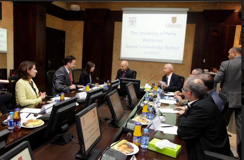 استقبل نائب رئيس جامعة البترا الدكتور محمد العناني وفدًا من جامعة كوينز البريطانية، بهدف تعزيز سبل التعاون الأكاديمي وبحث توسيع تبادل الخبرات وتفعيل اتفاقية التعاون المشتركة الموقعة بين الجامعتين، بحضور المستشار الأعلى لجامعة البترا الدكتور عدنان بدران