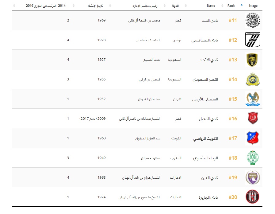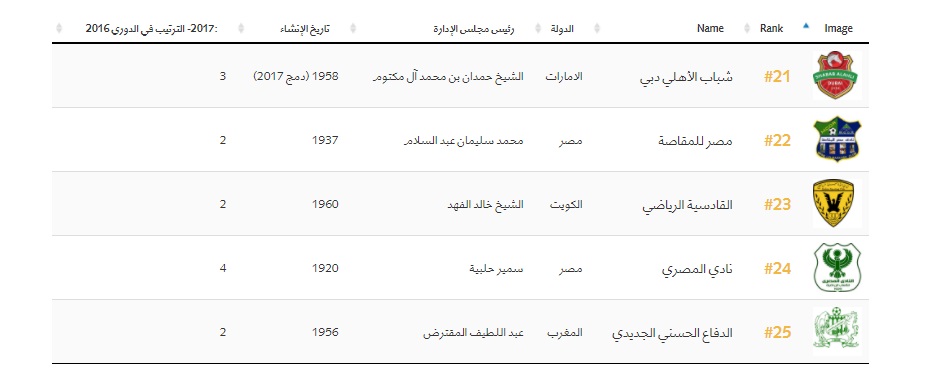 أما تونس ومصر والسعودية، التي تمتاز بأقوى 3 بطولات دوري تنافساً في المنطقة وفق الاتحاد الدولي لتاريخ وإحصاءات كرة القدم، فلها 4 أندية في القائمة، مما يجعلها تتشارك الصدارة.