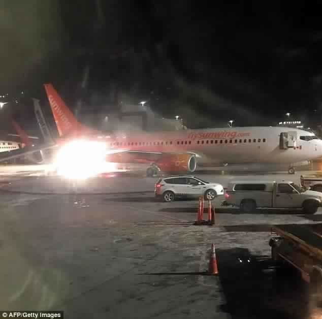 لحظات عصيبة مرت على ركاب الطائرة والبالغ عددهم 168 راكباً، التي كانت قادمة من كانكون بالمكسيك، عندما ارتطمت بهم طائرة سونوينغ تتحرك من البوابة..