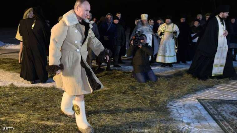 يذكر أن تقاليد العيد في روسيا تتطلب غطس رئيس الدولة في مياه البحيرة المتجمدة.