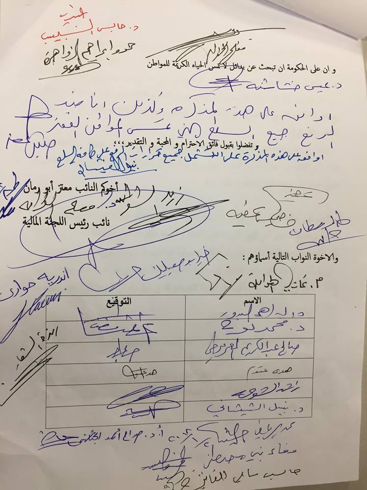 ووقع نحو 80 نائب المذكرة ورفعها الى الامانة العامة للمجلس؛ ثم الى رئيس مجلس النواب المهندس عاطف الطراونه ، تمهيدا لمخاطبة الحكومة بها .