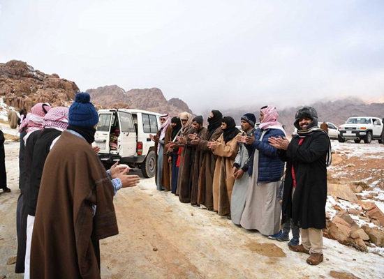 وازدحمت الطريق المؤدية إلى مواقع هطول الثلج في منطقتي علقان واللوز بالزائرين والمتزلجين، حيث تقابل هذه الثلوج بترحيب من قبل سكان المنطقة، تتمثل في خروجهم للاستمتاع بمنظر الثلوج المتساقطة على الكثبان الرملية والجبال.