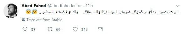 وكتب فهد في تغريدة له عبر "تويتر": "اللي عم يصير في "ذا فويس كيدز" شيزوفرينيا بين الفن والسياسة، والطفولة ضحية المستثمرين".