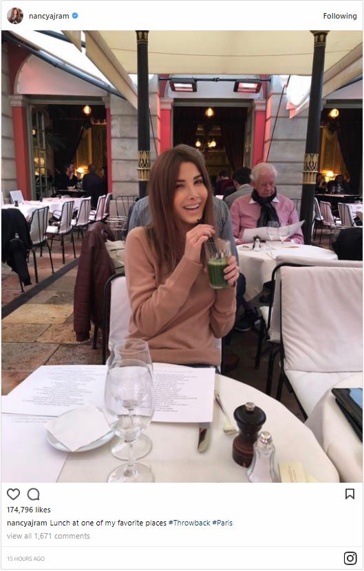 أشعلت الفنانة نانسي عجرم "إنستغرام" بعدما نشرت على صفحتها الخاصة صورة لها وهي تتناول طعام الغداء في أحد المطاعم الباريسية.