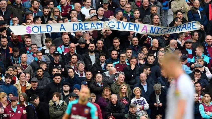 ورددت الجماهير عبارات مثل "نحن لسنا وست هام بعد اليوم"، و"أين ذهبت الأموال؟"، و"أقيلوا الإدارة".