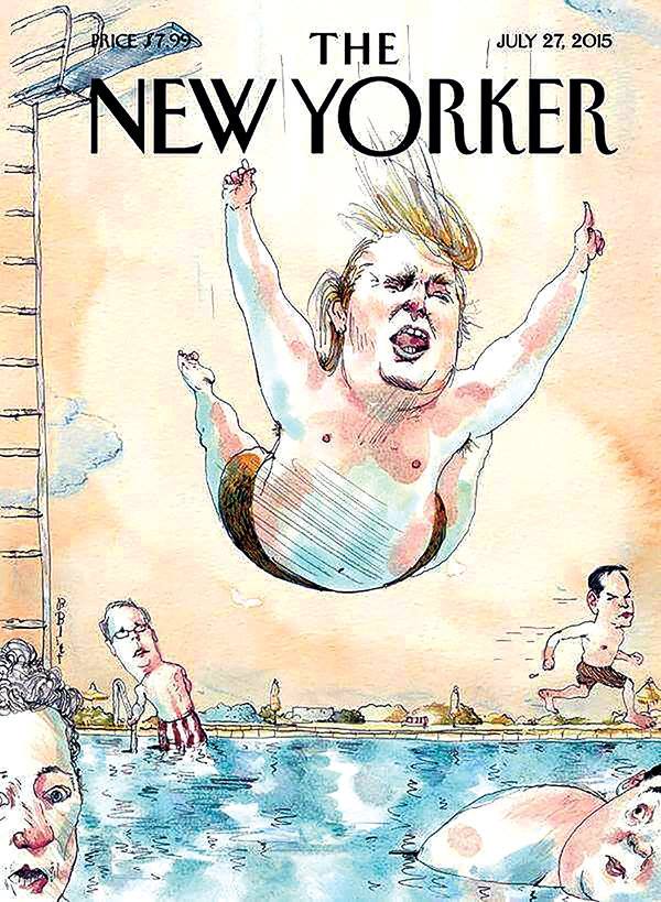 وأوضح باري بليت رسّام الكاريكاتير ان موقفه من الرسم بالقول : إن ترامب، في مخيلته، "يبدو عاريا مجازيا أمام الصحفيين".. هذه ليست المرة الأولى بالطبع التي تنشر صورة ترامب على غلاف المجلة.