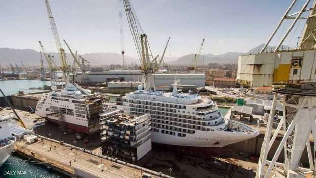 شطرت سفينة سياحية ضخمة على شاطئ إيطالي إلى نصفين في خطوة فريدة من نوعها، وذلك من أجل تمديد مساحتها بمقدار 49 قدم مربع بنسبة 12%، وبالتالي زيادة عدد ركابها.
