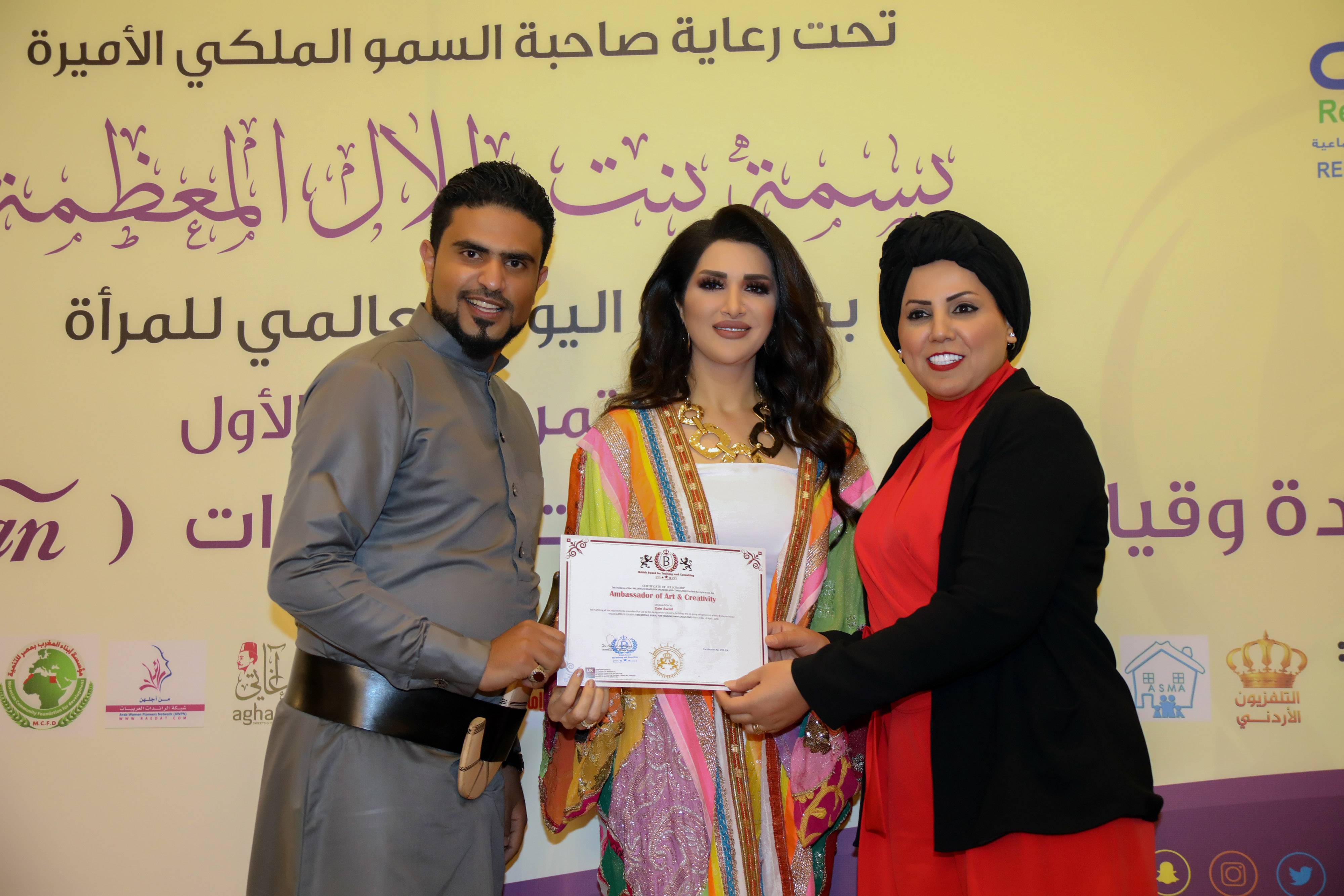 برعاية الأميرة بسمة بنت طلال، وتحت شعار "المرأة ريادة وقيادة" في "المؤتمر الدولي الأول للمرأة"، كرّم المجلس البريطاني لتدريب والاستشارات في المملكة الأردنية الهاشمية، الفنانة الأردنية زين عوض بلقب "سفيرة الفن والابداع"، ضمن حفل كبير ضم ضيوف من الشخصيات الاجتماعية والإعلامية العربية من الكويت والسعودية، فلسطين، سوريا، السودان والمغرب، ونظمه مؤسسة إطعام للتنمية والتدريب.