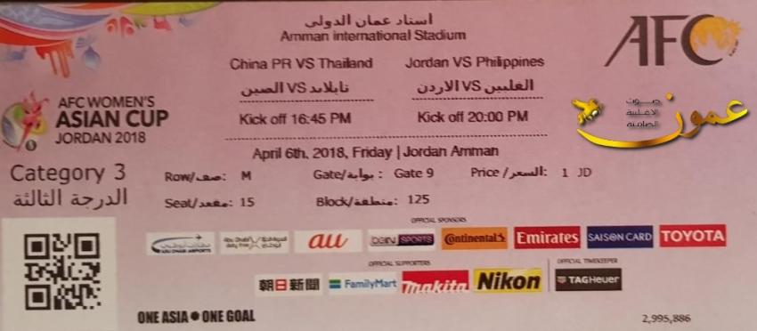 قامت مجموعة العبدلي للاعلام ناشر 'عمون' بشراء كافة تذاكر الدرجة الثالثة لبطولة كأس اسيا للسيدات بقيمة عشرة الاف دينار للمباراة الافتتاحية للبطولة التي ستقام يوم الجمعة 6 نيسان على ستاد عمان الدولي.