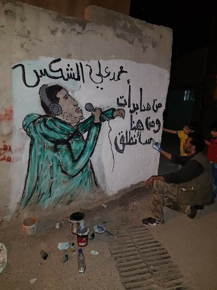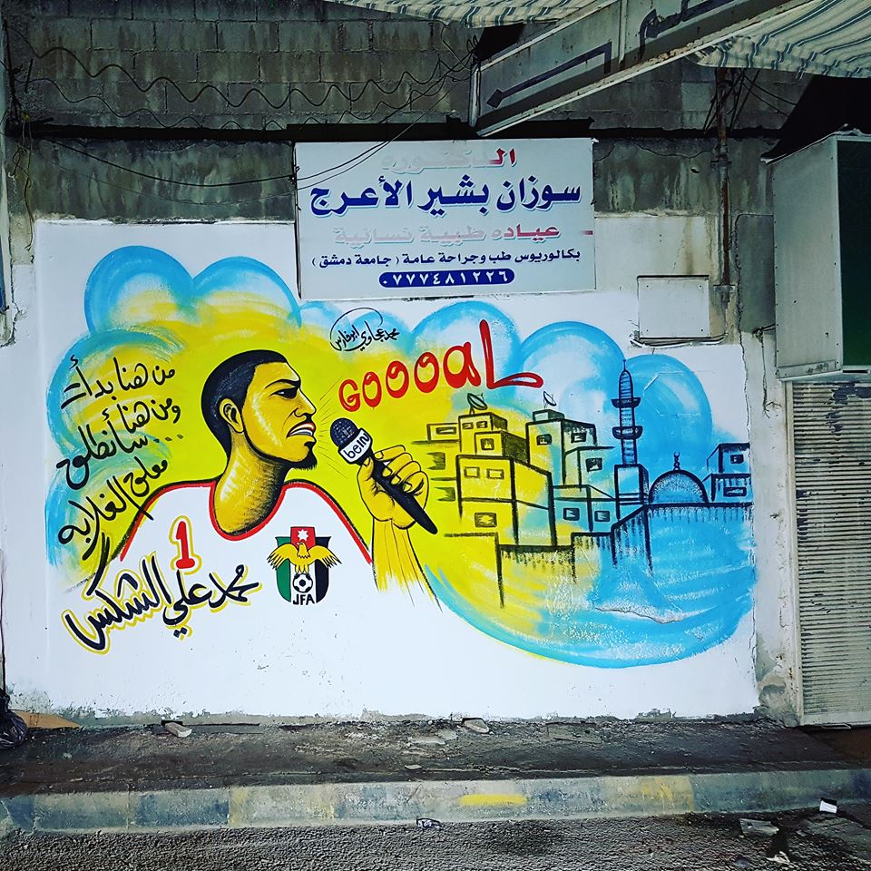 "اعلق بالمناطق النائية والمهمشة وكل ما اطلبه كوب مياه " هكذا رد الشيكس على سؤال احداث اليوم حول سر الجملة الشهيرة التي اطلقت عليه ، حيث اشار انه يتطوع بشكل دوري في التعليق على مباريات بالمناطق المهمشة ، في مبادرة للتعليق الرياضي هناك ودون مقابل ، حيث كرمه اهالي مدينة السلط برسم لوحة جدارية حملت عنوان "معلق الغلابة " كتعبير منهم على حبهم وتقديرهم لاعمال الشيكس .