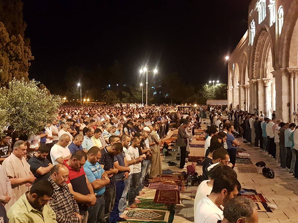 أدى 80 ألف مصل ، من فلسطين المحتلة عام 1948 و الضفة الغربية ، صلاة التراويح في اليوم الثاني من رمضان المبارك ، بالمسجد الأقصى المبارك .