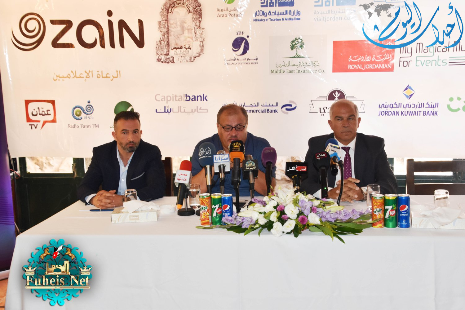 وتحدث مدير المهرجان ايمن سماوي خلال المؤتمر عن أهمية مهرجان الفحيص واستمراريته للعام 27 لتسليط الضوء على مدينة الفحيص التاريخية والعريقة بالاضافة لدعم الفن الاردني بكافة اشكاله .