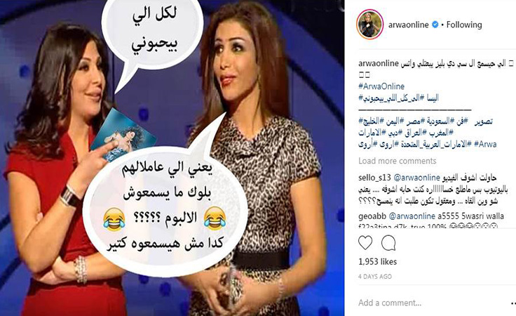 نشرت الفنّانة اليمنيّة أروى على حسابها على موقع التواصل الاجتماعي الانستغرام صورة لها مع الفنّانة إليسا وهي ممسكة بيدها بـ'سي دي' الألبوم الجديد (إلى كل اللي بيحبوني)، وكُتِبت تعليقاً على الصورة لتقول: 'إلى كل اللي بيحبوني؟ يعني اللي عامللهم بلوك مايسمعوش الألبوم؟ كده مش هايسمعوه كتير'، في إشارة إلى أنّ لها كارهين كثيرين.