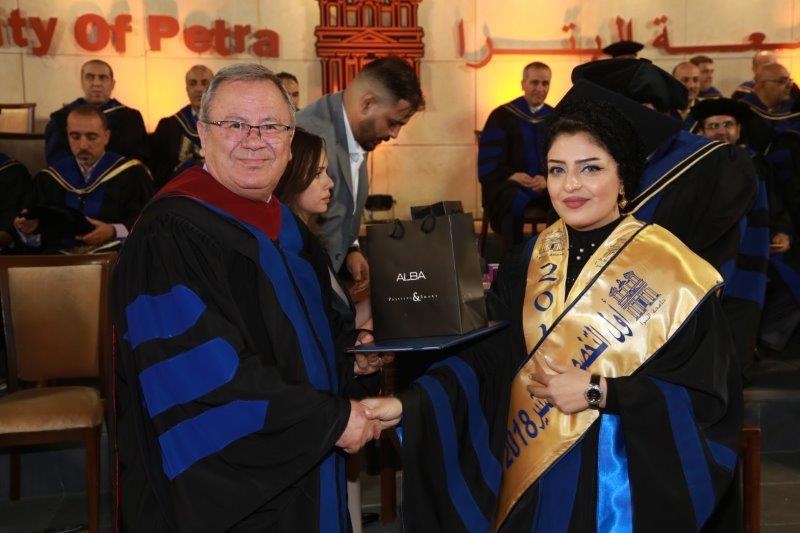 وتم في الاحتفال تقديم جائزة أفضل باحث في الجامعة للعام الجامعي 2017/2018 إلى الدكتور وائل أبو دية وجائزة أفضل مدرس للدكتور إياد الملاح وحضر الحفل مدير عام شركة البتراء للتعليم المهندس محمد مازن الأنصاري، وعمداء الكليات وأهالي الخريجين.