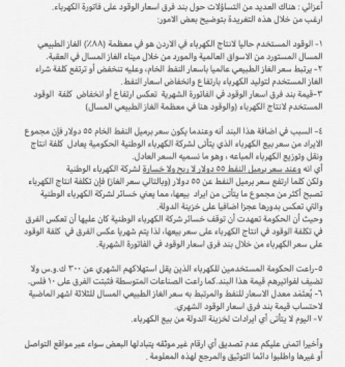 وقالت زواتي عبر حسابها بموقع التدوينات المصغر 'تويتر": "إن إضافة هذا البند، جاء لإيقاف خسائر شركة الكهرباء الوطنية"، مؤكدة ، أن ارتفاع سعر برميل النفط عن 55 دولارا، يسبب ارتفاع كلف انتاج الكهرباء أكثر من إيراد بيعها، ما يعني خسائر الشركة.