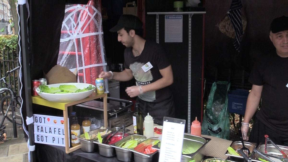 وعلى بعد مئات الأمتار من متحف بريطاني عريق، تحول أحد أكشاك الهواتف إلى محل لبيع الفلافل وأنواع السلطات المختلفة.
