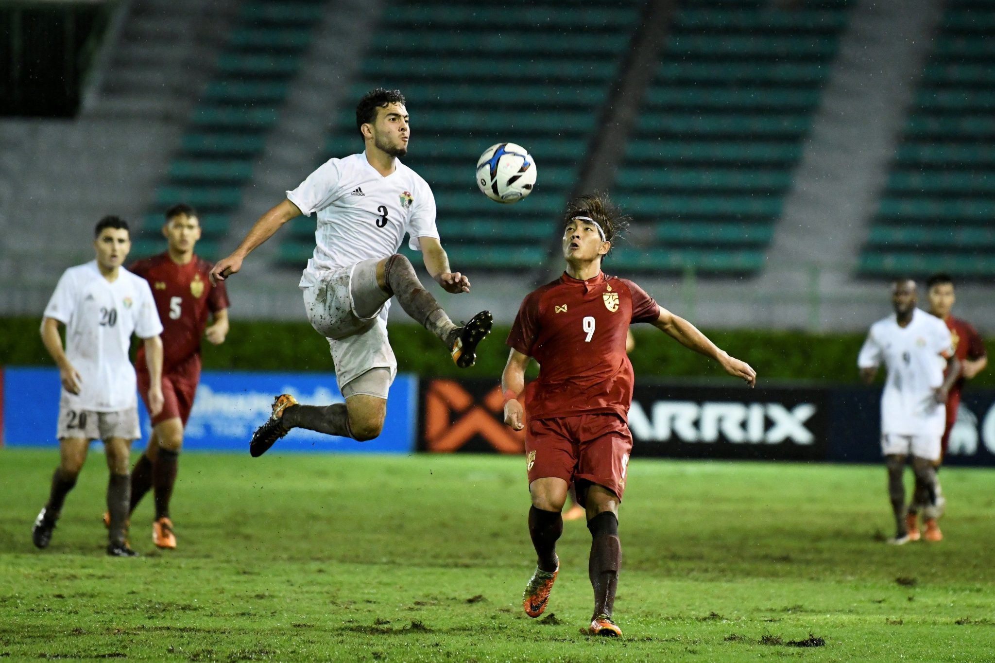 وانتفض المنتخب عقب هدف بني عطية، وضغط بقوة على دفاعات المنتخب التايلندي الا انه عانى في نقل الكرة إلى المقدمة بسبب الأمطار.