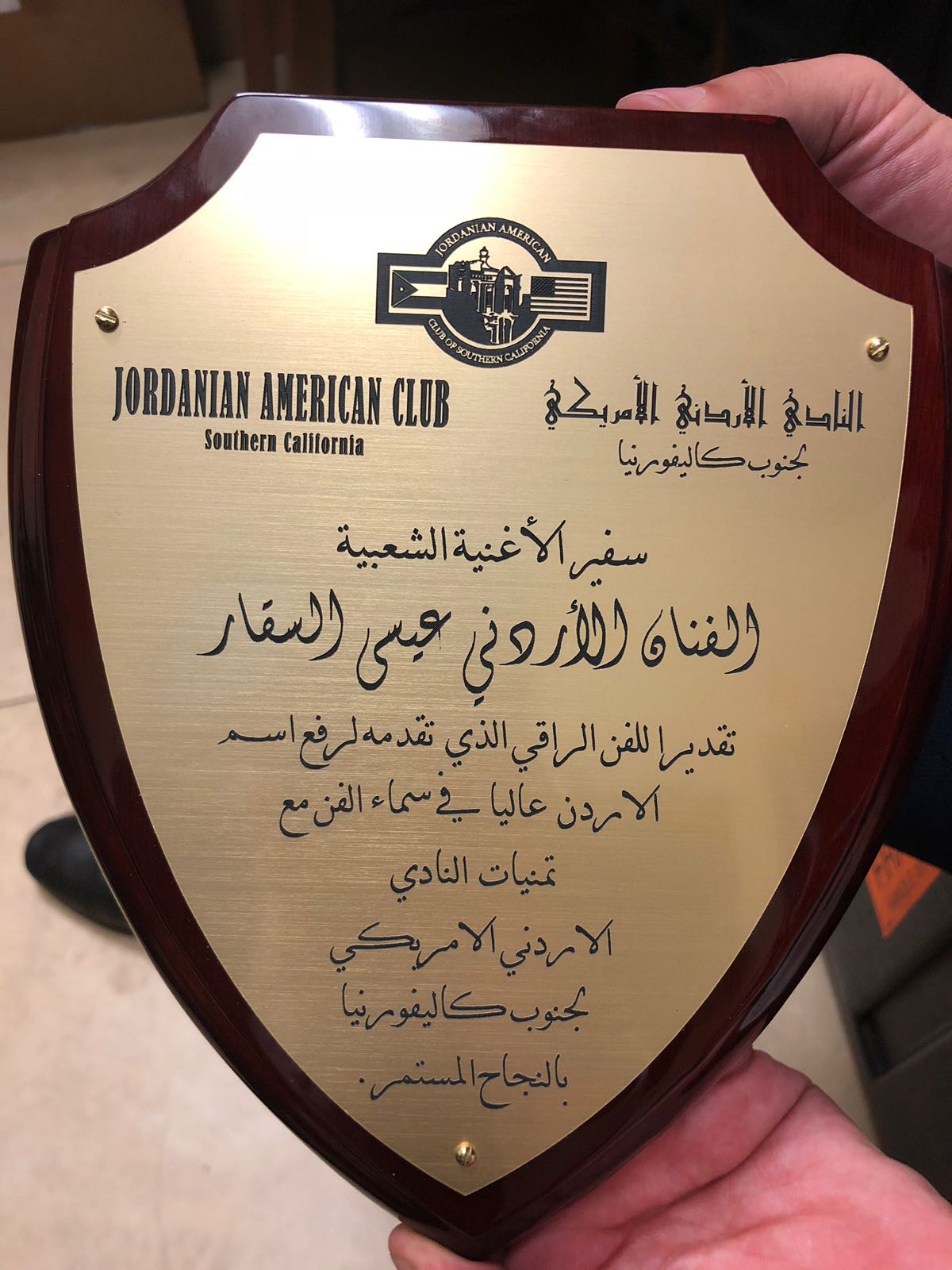 و بعد انهاء الفنان احدى الحفلات قام النادي الاردني الامريكي بجنوب كالفورنيا بتكريم الصقار .