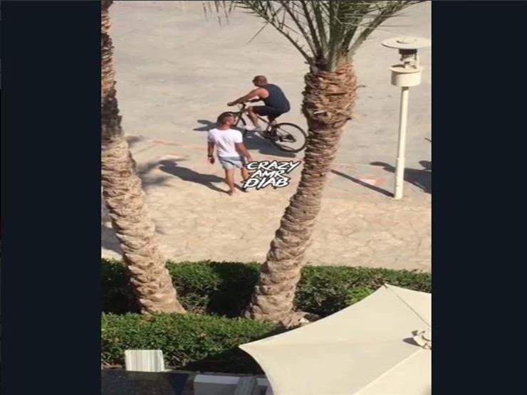 أحداث اليوم - تداول بعض نشطاء مواقع التواصل الاجتماعي، صوراً للفنان عمرو دياب وهو يقود دراجة هوائية في الجونة، وتمشي إلى جواره دينا الشربيني سيراً على الأقدام، مرتدية ملابس البحر، وبرفقتها الحارس الخاص.
