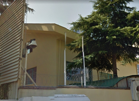 وعلى الطرف الثاني من ذات الجهة توجد كاميرا مراقبة تصور المدخل الرئيس للمراجعين، والذي تقع بجانبه غرفة صغيرة للشرطة التركية المكلفة بحراسة السفارة.