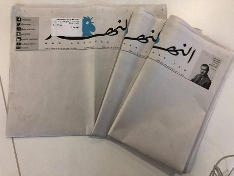 أحداث اليوم - أثارت صحیفة "النھار" اللبنانیة الجدل بعد أن صدر عددھا، الیوم الخمیس، باللون الأبیض. وعقدت رئیسة تحریر "النھار" نایلة تویني، مؤتمرا صحافیا، شرحت فیھ أسباب صدور الصحیفة باللون الأبیض.