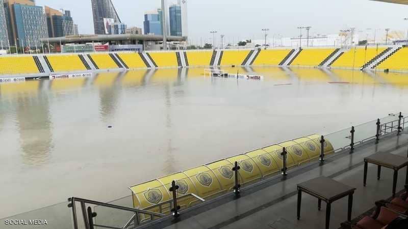أما الصورة التي نبهت إلى مخاطر السيول على المونديال، فكانت غرق ملعب نادي قطر بشكل شبه كامل، حيث ارتفع منسوب المياه به لما يقترب من المتر.