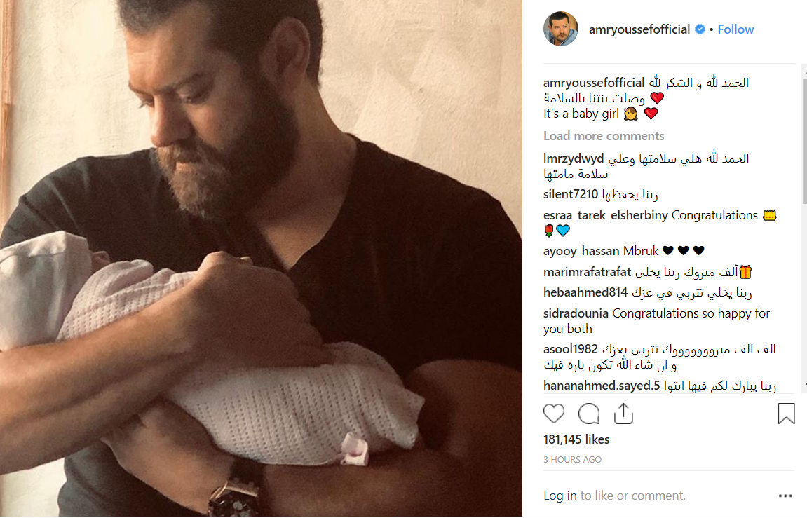 هكذا احتفل عمرو يوسف بمولودته الجديدة