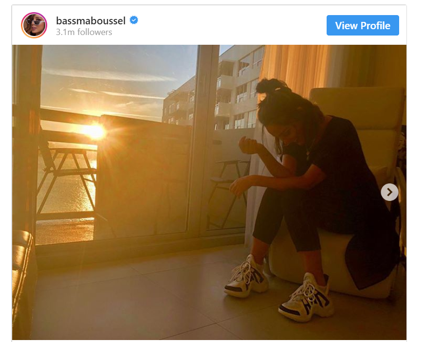بسمة بوسيل ظهرت في الصورة التي نشرتها وهي محتفظة برشاقتها بعد أسبوعين من وضعها لطفلها الثالث من الفنان المصري تامر حسني.