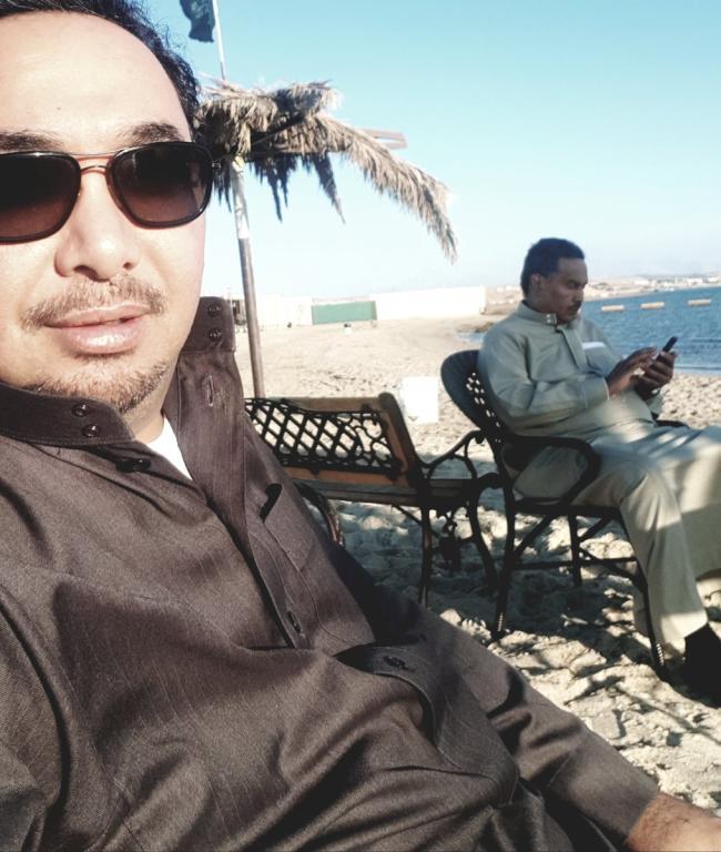 وشارك الشاعر صالح الشادي مقاطع فيديو وصوراً للفنان محمد عبده يستمتع بالأجواء الجميلة على شاطئ البحر. (سيدتي)