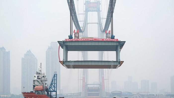 ومن المتوقع أن يتم الانتهاء من الجسر، الذي يمتد فوق نهر يانغتسي، أطول نهر في الصين، في مدينة ووهان، البالغ عدد سكانها 10 ملايين نسمة، وهي عاصمة مقاطعة هوبي، في أكتوبر المقبل بحسب ما ذكرت صحيفة "ديلي ميل" البريطانية.