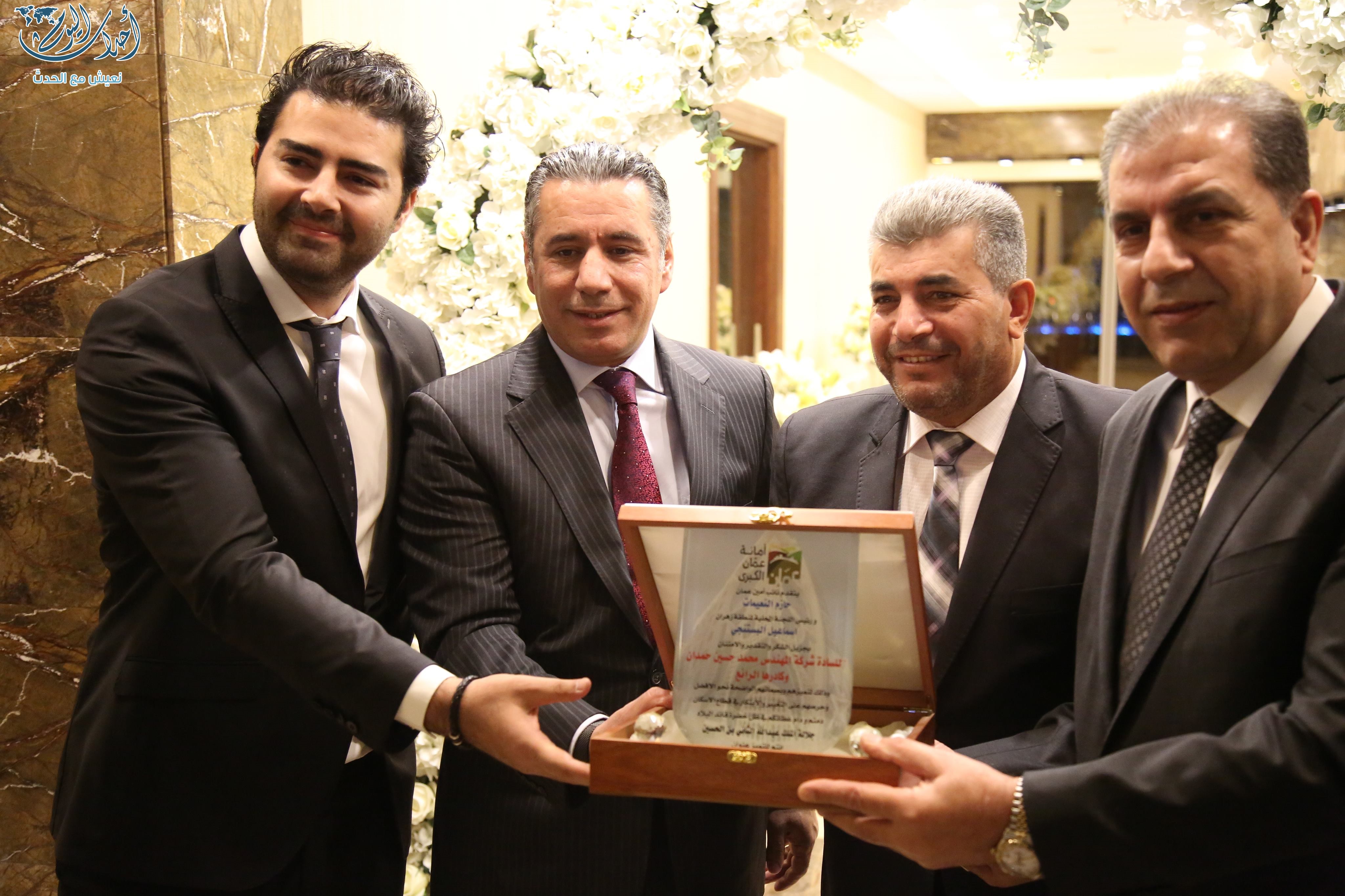 خاص - كرمت أمانة عمان أمس الأحد شركة محمد حسين حمدان للتطوير العقاري لتميزهم و حرصهم على التغيير والابتكار في قطاع الاسكان .