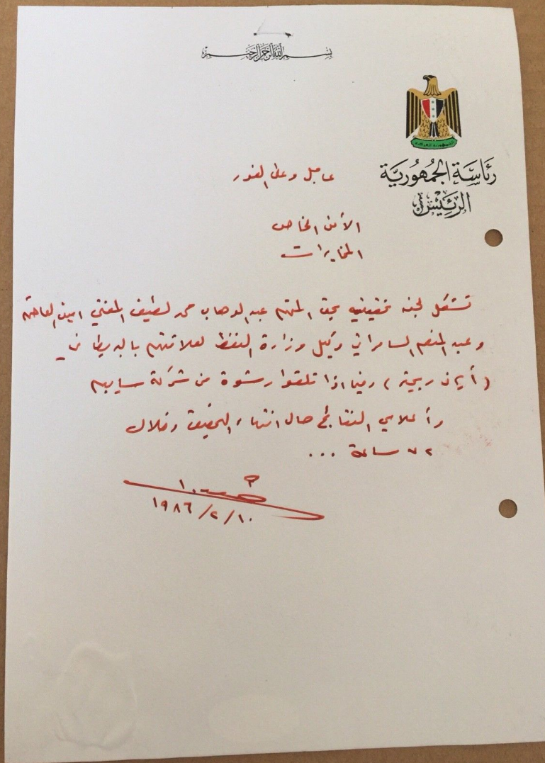 وتضمنت الوثائق، أوامر من صدام حسين للجهات الحكومية والأمنية والوزارات، خلال سنوات حكمه، ووثيقة أخرى كانت لافتة، إذ تضمنت أمرا بتقديم بندقية مصنوعة من الذهب للملك خالد بن عبد العزيز، وقلادة ذهب رئاسية، ووسام الرافدين المدني درجة أولى.
