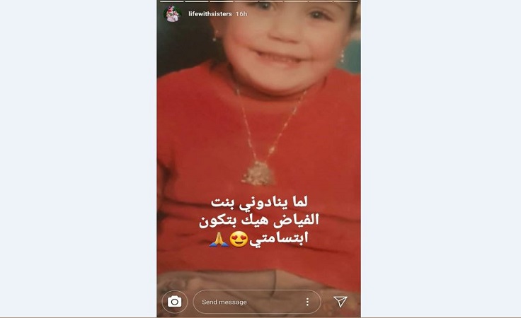 واختتمت الصور التي نشرتها بصورة وهي طفلة وتبتسم، وكتبت: "لما ينادوني بنت الفياض.. هيك بتكون ابتسامتي".