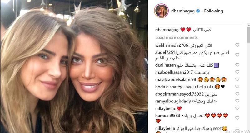 أحداث اليوم - شاركت الفنانة ريهام حجاج جمهورها صورة لها مع إحدى صديقاتها وذلك عبر حسابها على موقع التواصل الاجتماعي انستقرام وكتبت تعليقاً عليها :"نصي التاني" مع قلب أحمر مما دفع الجمهور للحديث عن الصورة وإبداء إعجابهم بها.