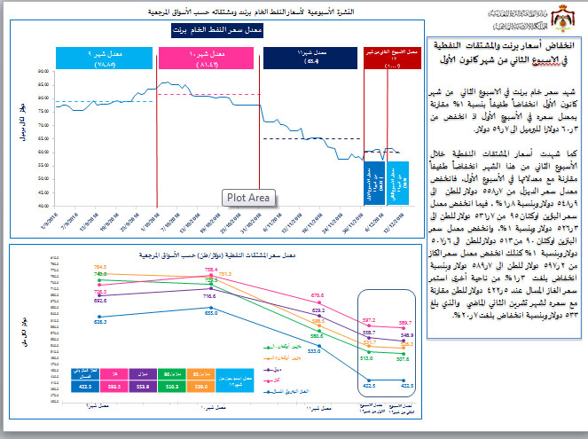 وانخفض معدل سعر البنزين اوكتان 90 من 513 دولار للطن الى 6ر507 دولار وبنسبة 1 بالمئة كذلك انخفض معدل سعر الكاز من 2ر597 دولار للطن الى 7ر589 دولار وبنسبة انخفاض بلغت 3ر1 بالمئة. من ناحية أخرى استمر سعر الغاز المسال عند 5ر422 دولار للطن مقارنة مع سعره لشهر تشرين الثاني الماضي والذي بلغ 533 دولار وبنسبة انخفاض بلغت 7ر20 بالمئة.