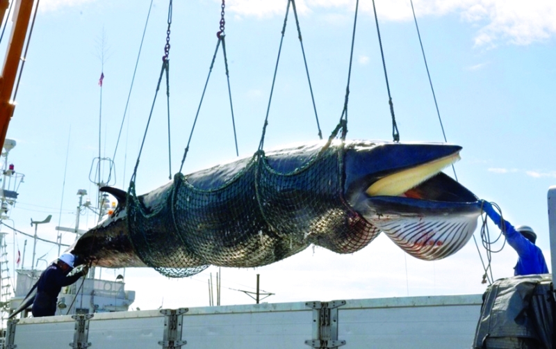 وتصيد اليابان سنويا مئات الحيتان لأغراض البحث العلمي، إلا أن لحومها تقدم في المطاعم في جميع أنحاء البلاد. وقد أدى صيد الحيتان إلى مصادمات عنيفة بين الحين والآخر مع ناشطين مناهضين لصيدها.