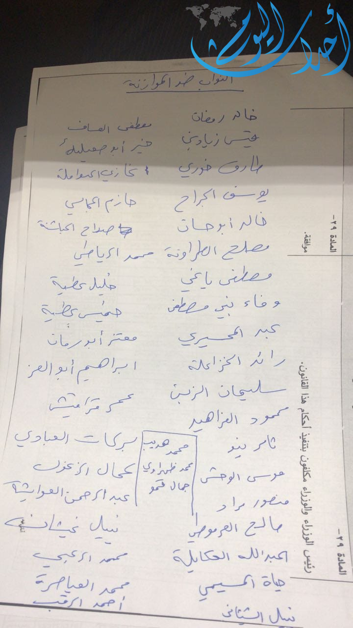 وتاليا النواب الذين صوتوا ضد الموازنة: