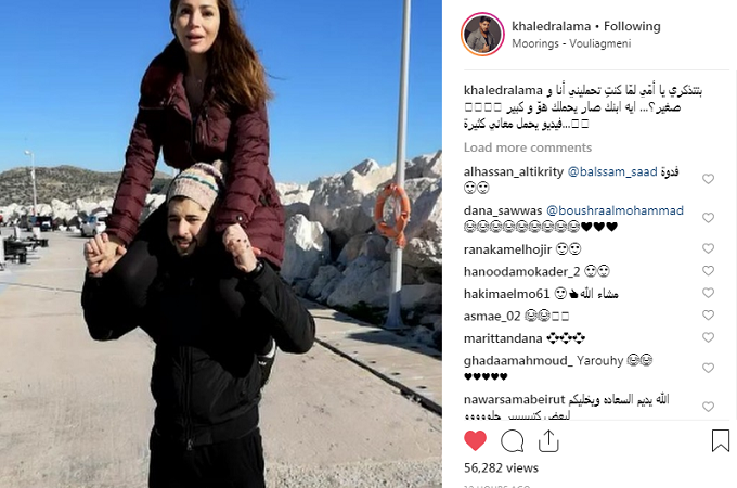 ونقل موقع نواعم عن خالد قوله وهو يظهر في الصورة حاملًا والدته على كتفيه "بتتذكري يا أمّي لمّا كنتِ تحمليني أنا وصغير؟.. إيه ابنك صار يحملك هوّ وكبير.. فيديو يحمل معاني كثيرة".