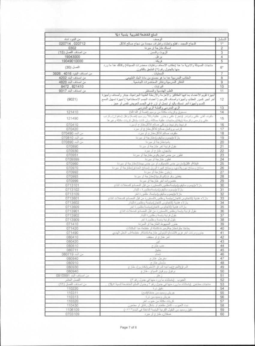 أحداث اليوم - نشرت الحكومة اليوم الثلاثاء اسماء السلع الـ 61 المخفضة ضريبتها. وشمل التخفيض السلع الأساسية الخاضعة لنسبة 10 و16 بالمئة لتصبح 4 بالمئة، وهذه السلع هي: